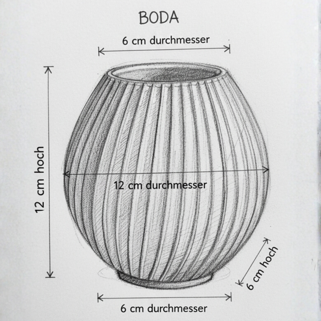 BODA zeigt, dass Kurven und Minimalismus perfekt zusammenpassen. Bauchig, elegant und doch reduziert, diese Vase wird zum Blickfang in jedem Raum. Ihr weiches, rundes Design bringt Form und Funktion harmonisch in Balance und verleiht jedem Umfeld nordische Leichtigkeit.