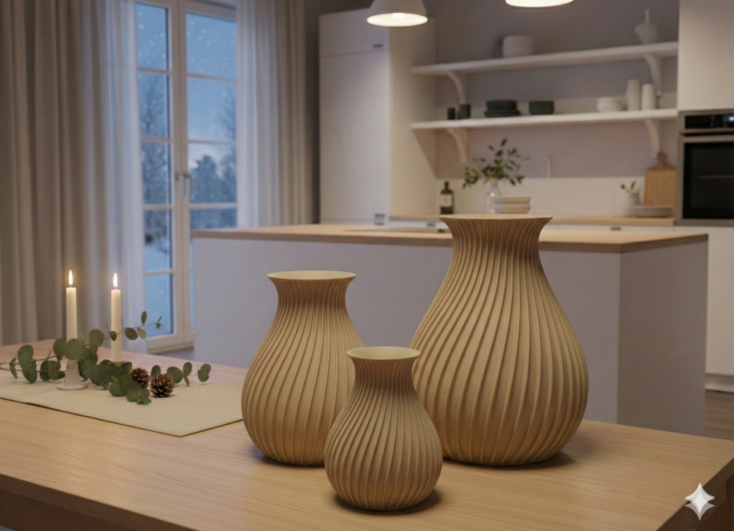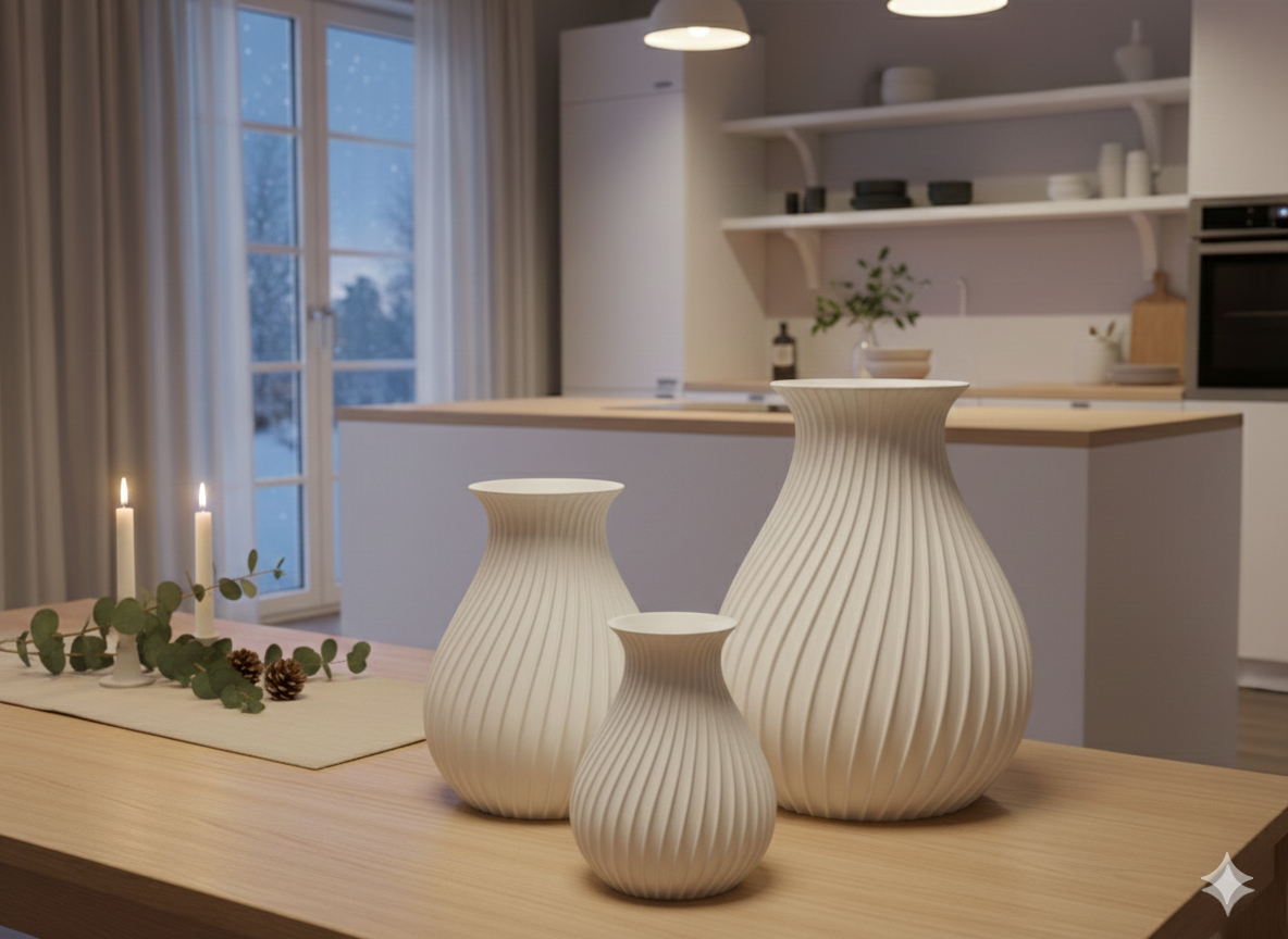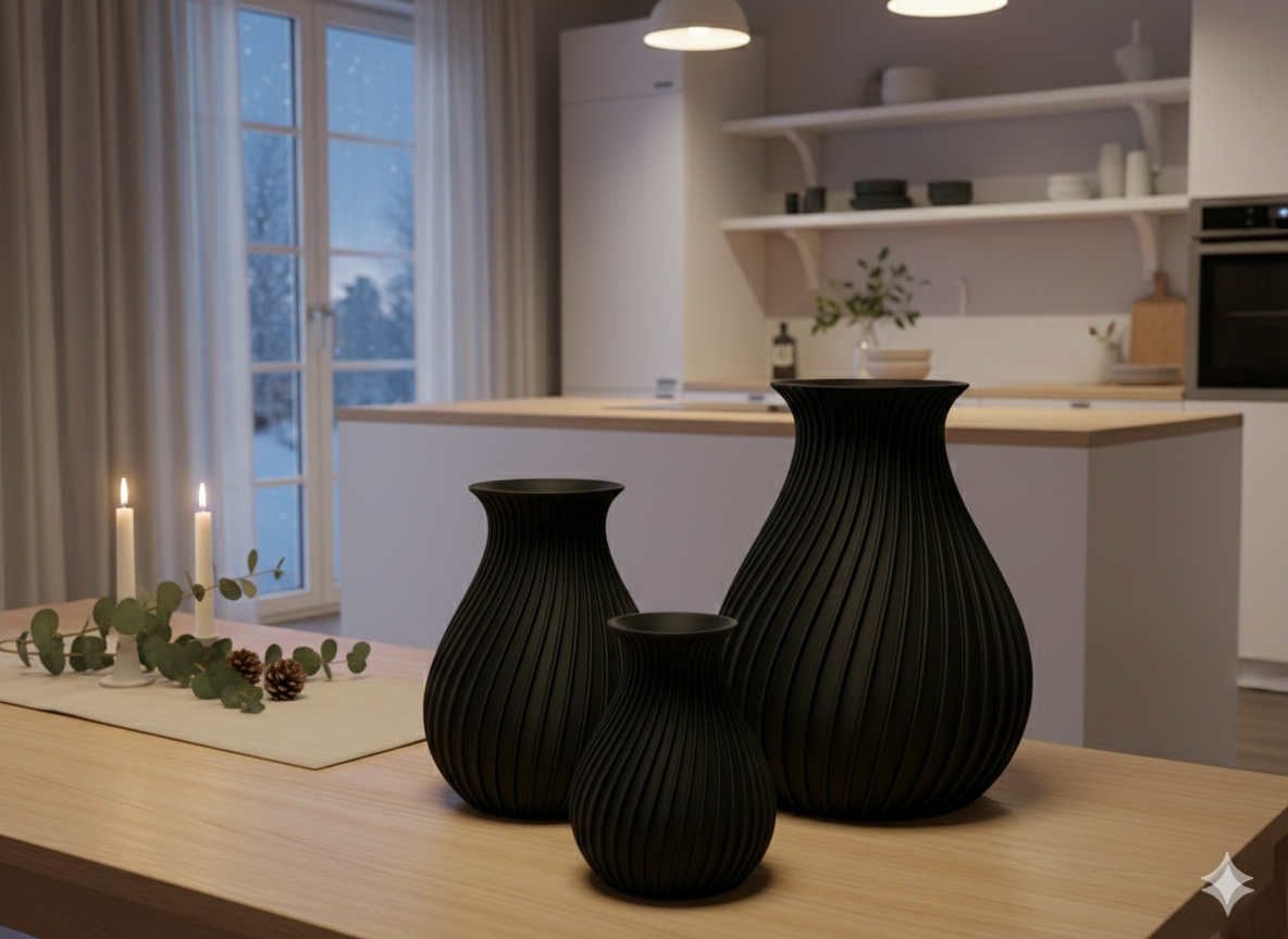 Die LYSA Kollektion vereint moderne Formen, skandinavische Klarheit und nachhaltige 3D-Drucktechnologie. Jede Vase entsteht in Deutschland aus biobasiertem PLA – präzise gefertigt, CO₂-neutral und mit einzigartiger Struktur.